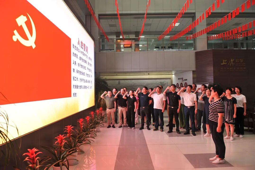 参观结束后,大家还面向鲜红的党旗,庄严宣誓,集体重温入党誓词。