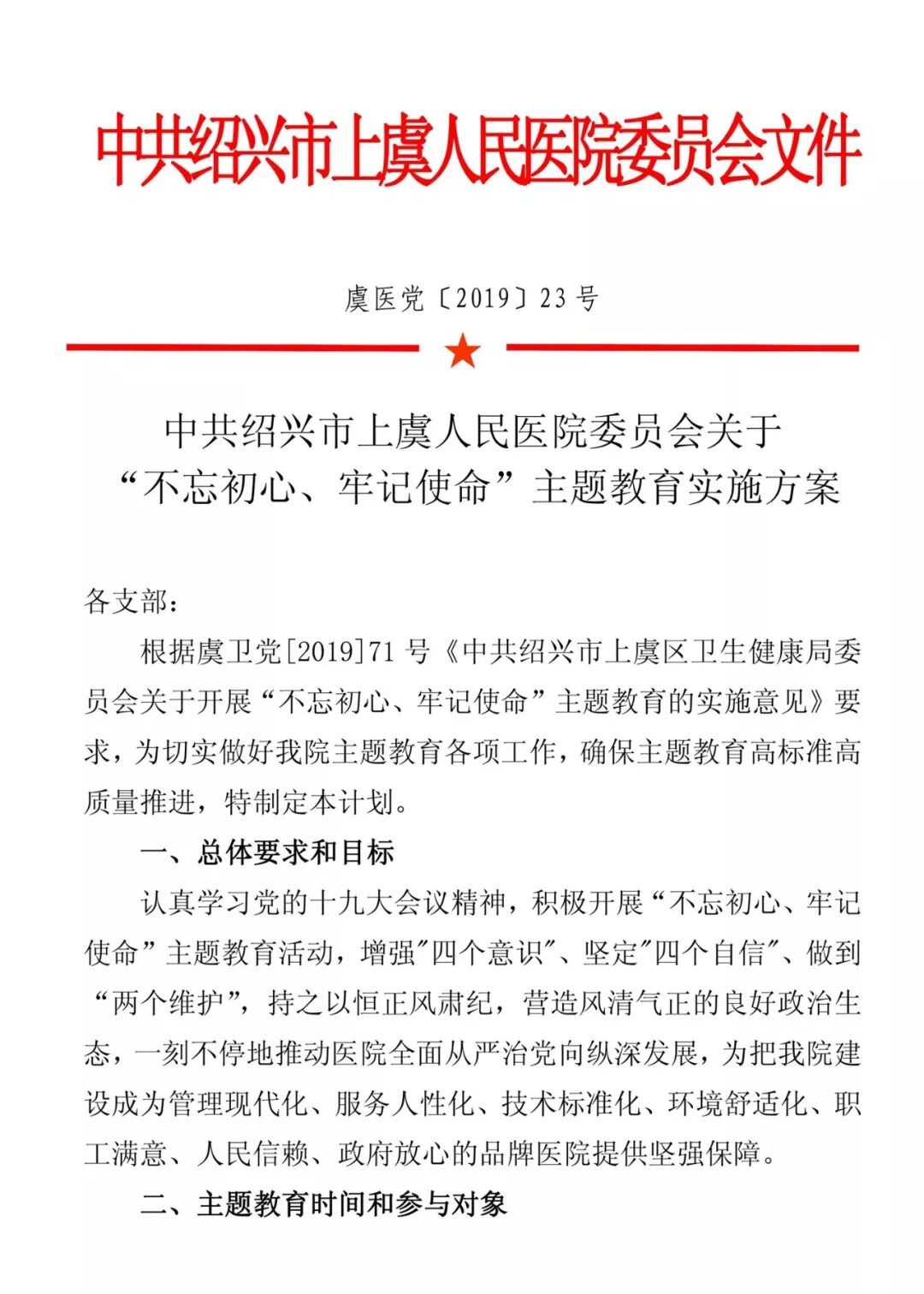 绍兴市上虞人民医院“不忘初心、牢记使命”主题教育阶段性回顾